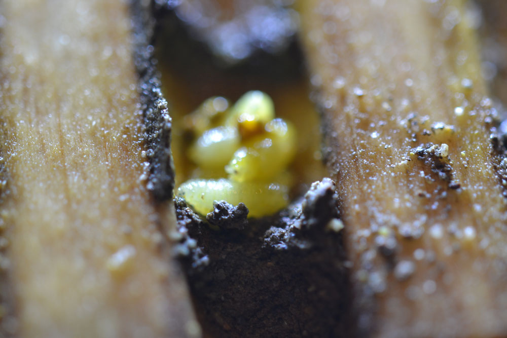 Houdini Fly maggots pictured below. Pollen mites can also overwhelm a hive.